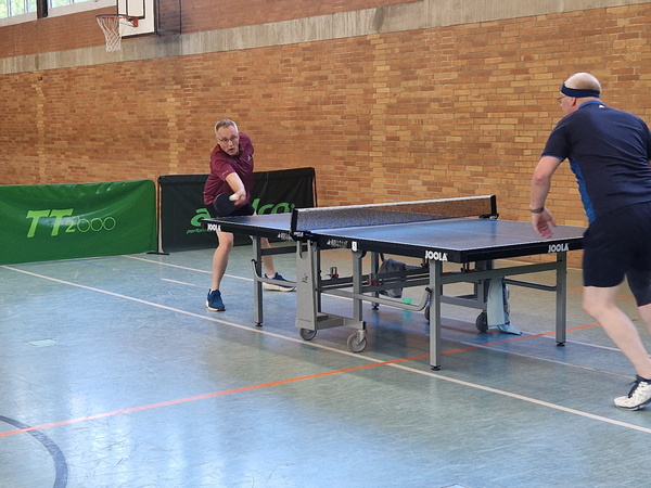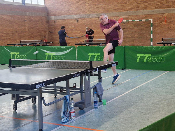 - Jürgen: Start wie ein Champion mit einem 3:2-Erfolg. Dann zwei unglückliche Fünfsatz-Niederlagen und irgendwie kam er nicht mehr so recht in Schwung. Endergebnis: 1 Sieg, 6 Niederlagen und leider Abstieg in Gruppe 5. Aber: Wer so oft über die volle Distanz geht, der weiß, dass nur Kleinigkeiten fehlen!