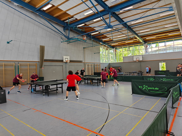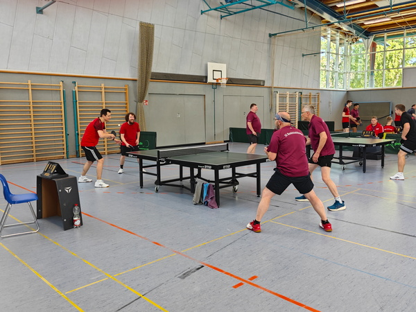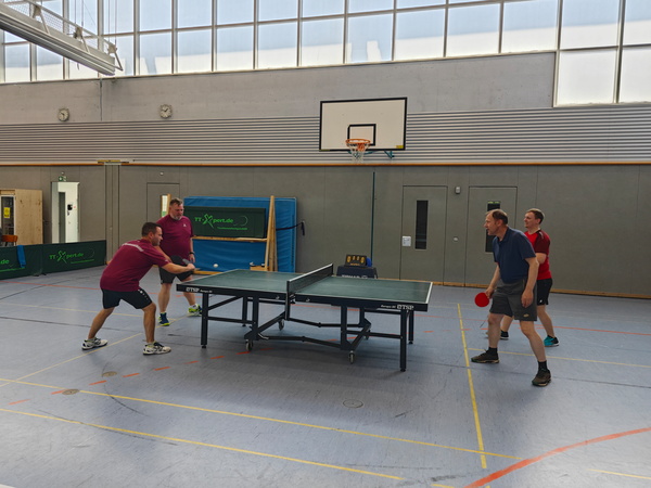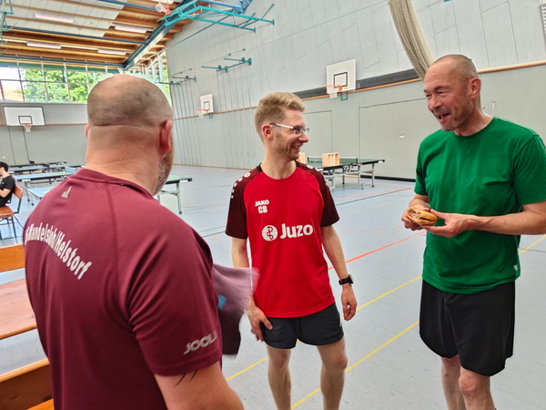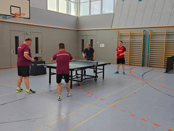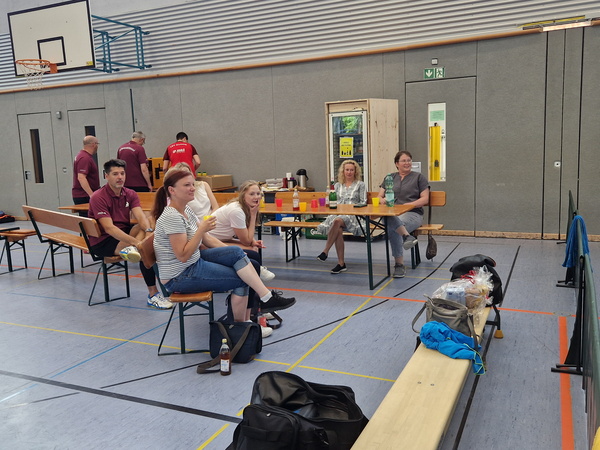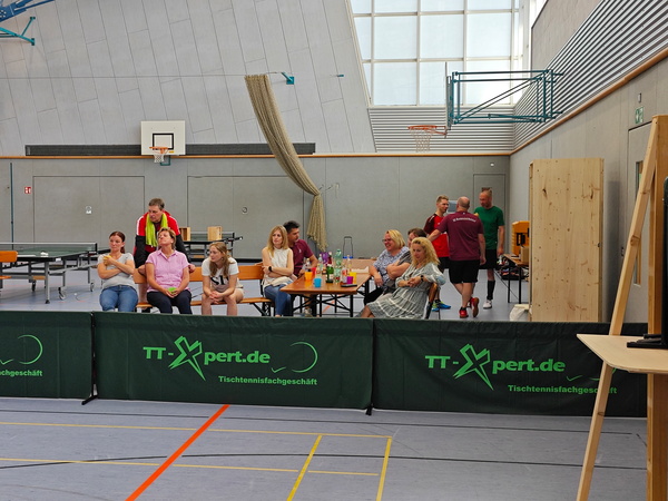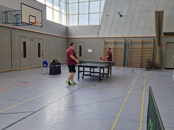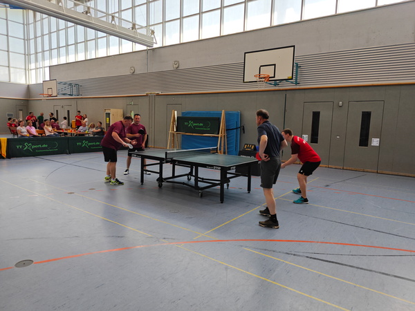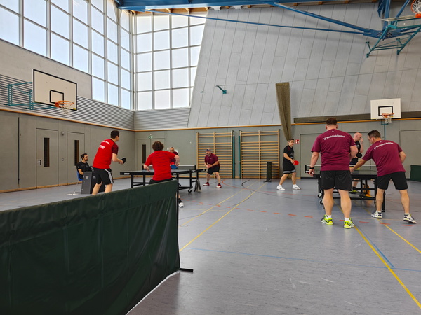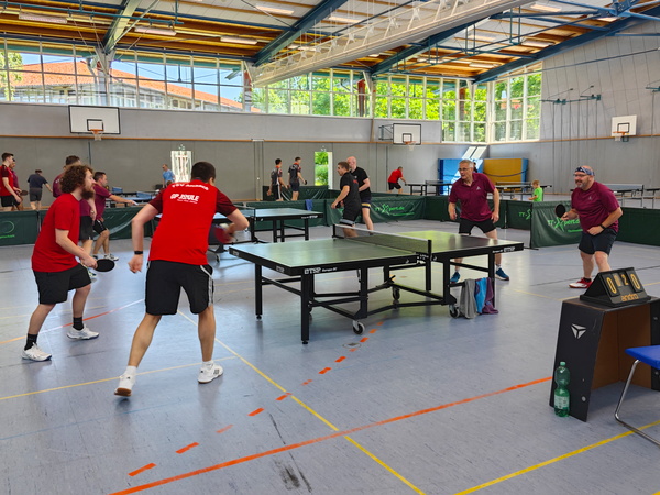 Nach einem weiteren geselligen Abend mussten wir am Samstagmorgen wieder ran: Internationales TT-Turnier. Nach zwei Tagen intensiver Hydrierung (in Hopfenform) war die Angst groß, dass wir mit wackligen Knien und fragwürdiger Koordination aufschlagen würden. Unsere Damen entschieden sich klugerweise für ein Frühstück in epischer Breite und kamen danach zum Anfeuern – sehr gute Taktik.