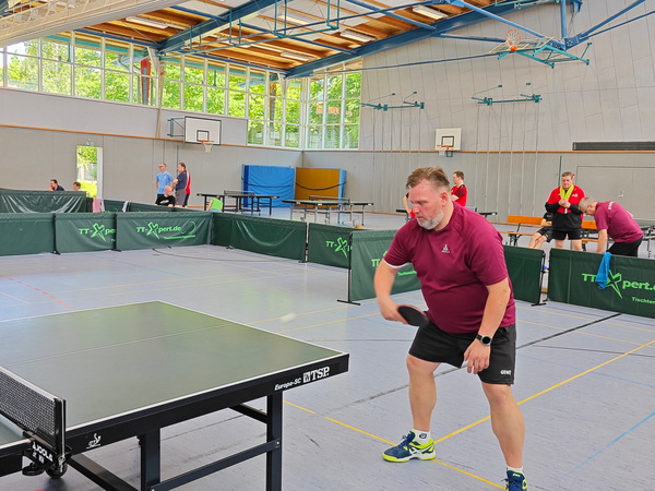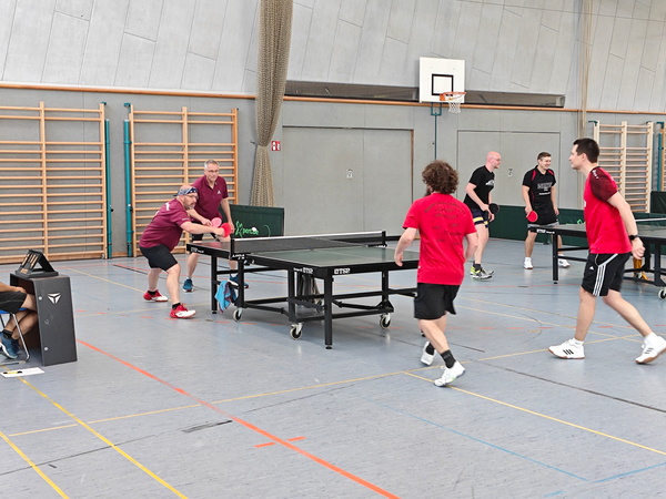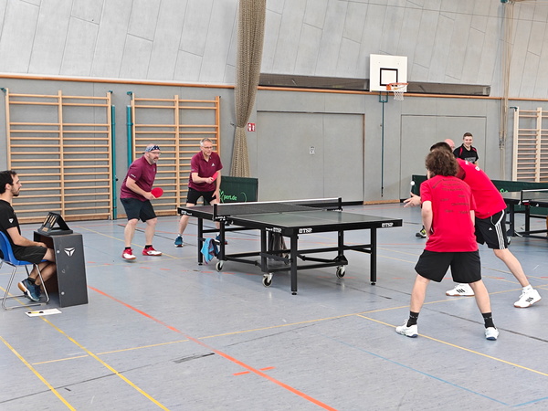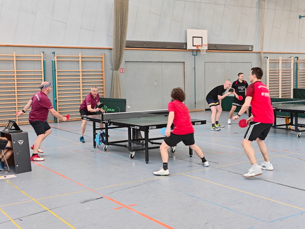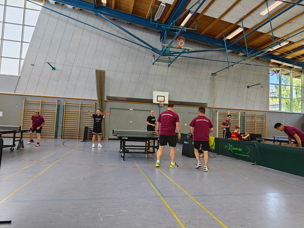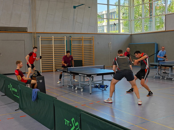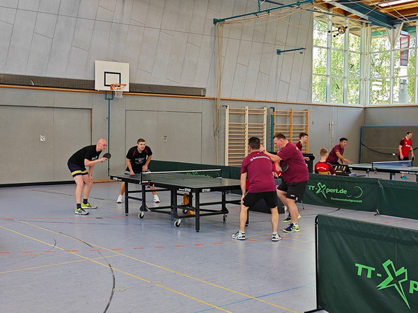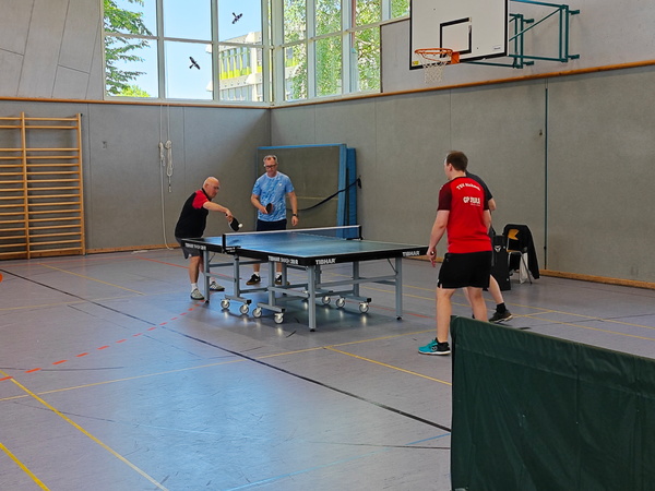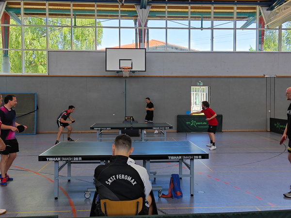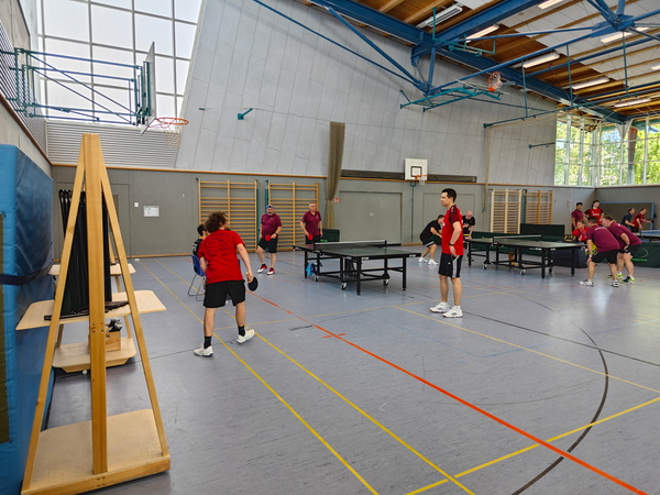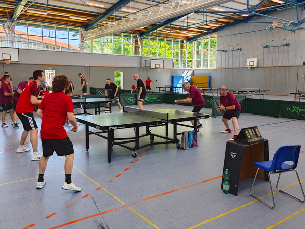 Nach einem weiteren geselligen Abend mussten wir am Samstagmorgen wieder ran: Internationales TT-Turnier. Nach zwei Tagen intensiver Hydrierung (in Hopfenform) war die Angst groß, dass wir mit wackligen Knien und fragwürdiger Koordination aufschlagen würden. Unsere Damen entschieden sich klugerweise für ein Frühstück in epischer Breite und kamen danach zum Anfeuern – sehr gute Taktik.