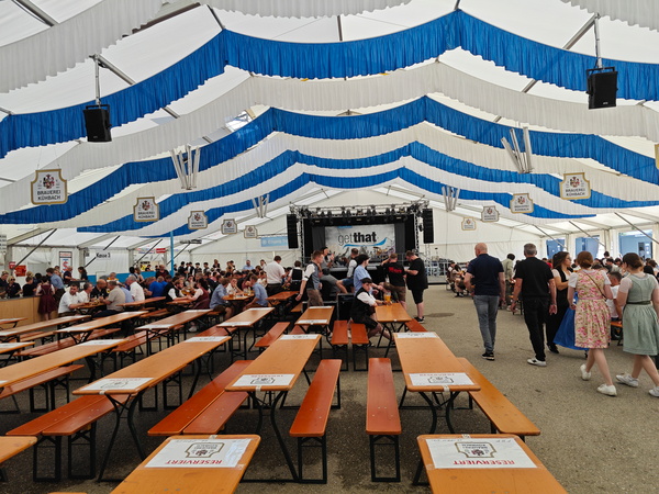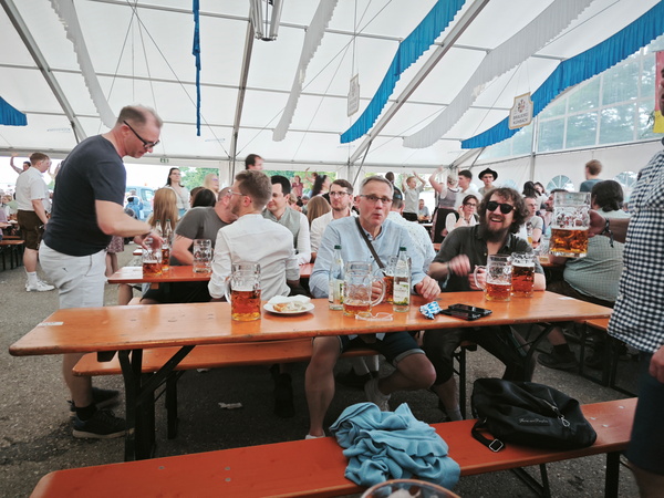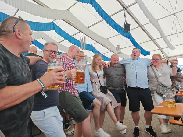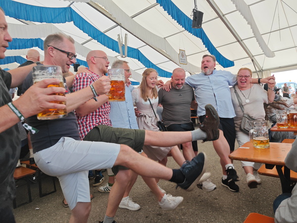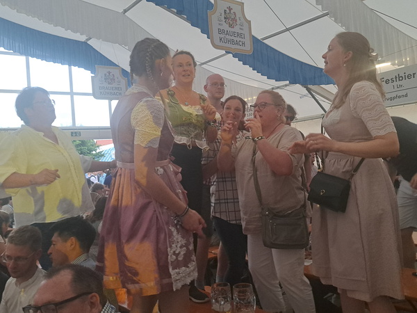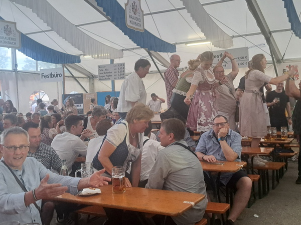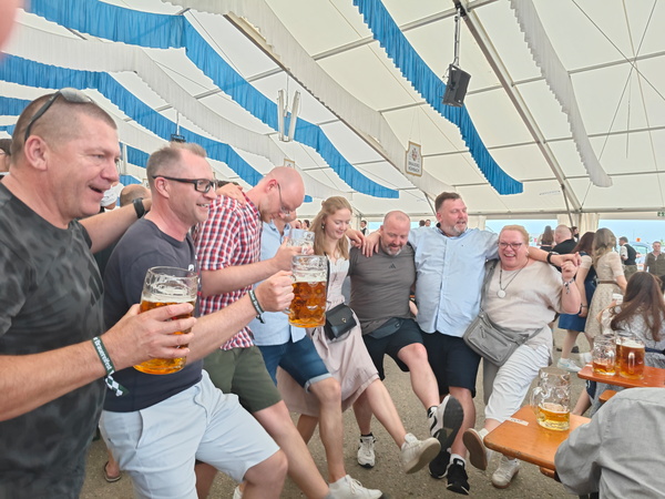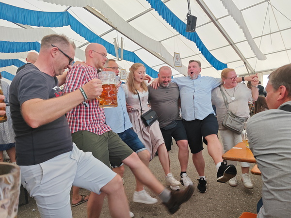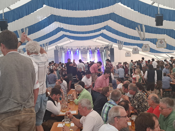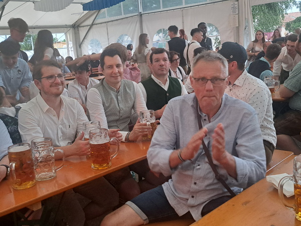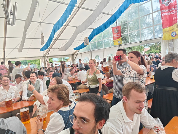 Aber damit nicht genug – direkt weiter ging’s zum Brauereifest in Kühbach. Dort testeten wir unter realen Bedingungen: „Wie viele Liter Bier schafft ein Mensch an einem Tag?“ Spoiler: Einige haben neue Rekorde aufgestellt. Es wurde getanzt, gesungen, geprostet – selbst wenn wir vom Text keine Ahnung hatten. Hauptsache, laut.