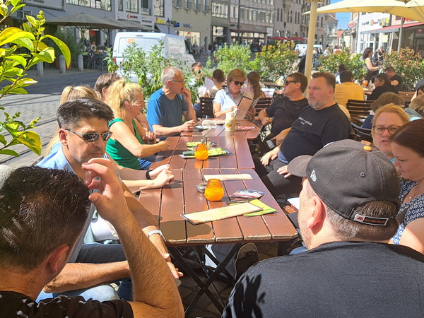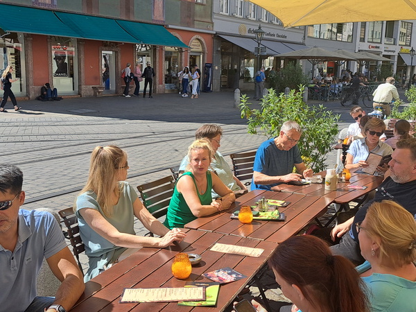 Freitag stand Augsburg auf dem Plan – ein bisschen Kultur für den Geist, ein bisschen Kulinarik für die Hüften. Wetter top, Laune top, Rückkehr zum Biergarten pünktlich wie eine Schweizer Uhr. Das nennt man Einsatz!