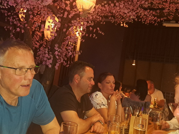 Dort wurden wir liebevoll von Nele und Wolfgang empfangen – vermutlich dachten sie: „Was ist das denn für eine Truppe?“ Nach dem Einchecken gab’s direkt eine kleine Stadtführung, um unsere Orientierungslosigkeit etwas zu minimieren. Abends ließen wir’s beim Asiaten HanVI (halb Japan, halb Vietnam, ganz lecker) krachen – und natürlich bei Cocktails und Bier, was sonst? Müde, aber glücklich fielen wir ins Hotelbett. Der eine früher, der andere… deutlich später.
